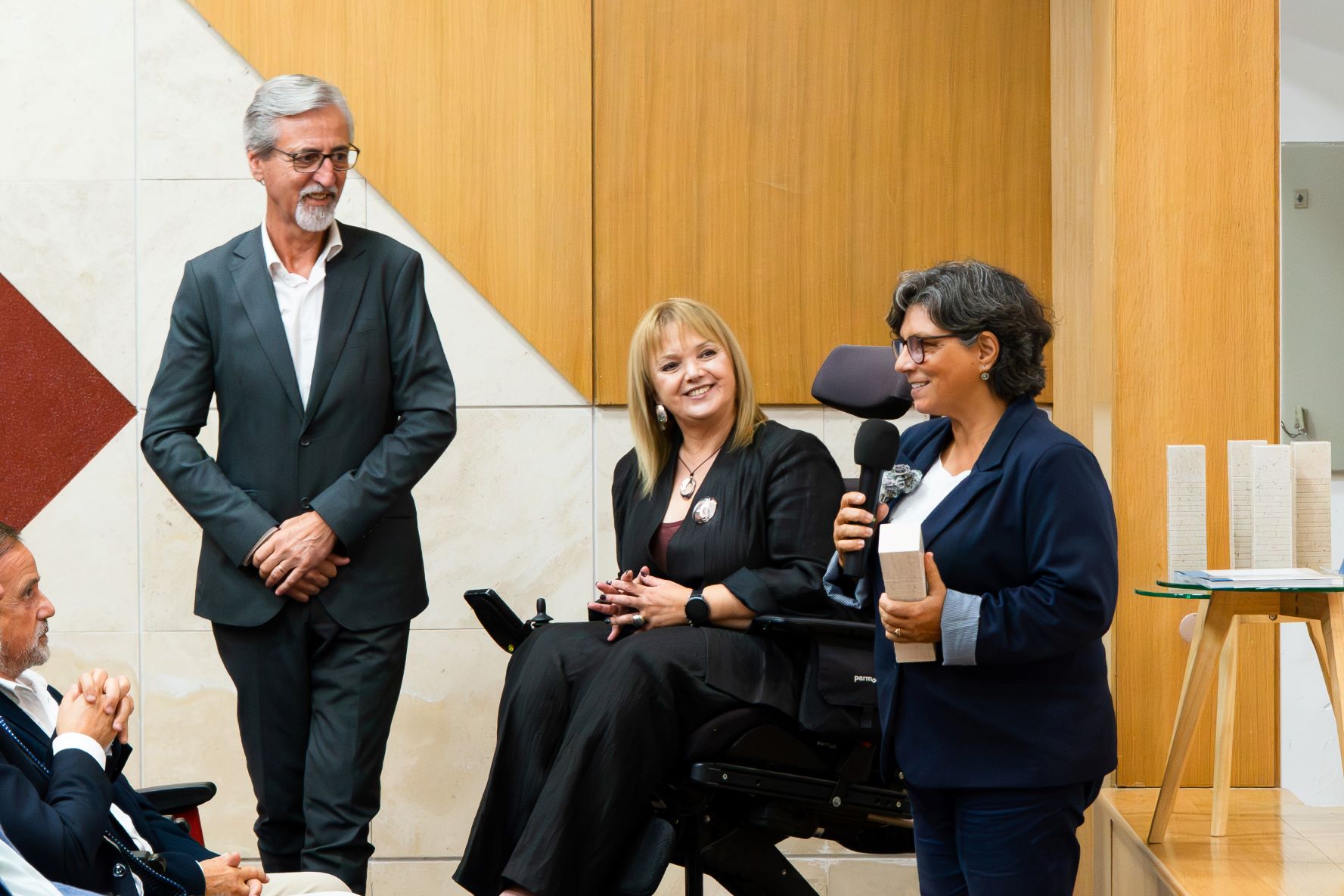 • Acessibilidade e Inclusão: Serviço de Apoio à Deficiência Visual da Lourinhã, pelo notável trabalho desenvolvido no apoio a cidadãos amblíopes e cegos, em cooperação com o Centro de Interpretação da Batalha do Vimeiro, promovendo a inclusão e o acesso à cultura. O prémio foi entregue por Manuela Ralha.