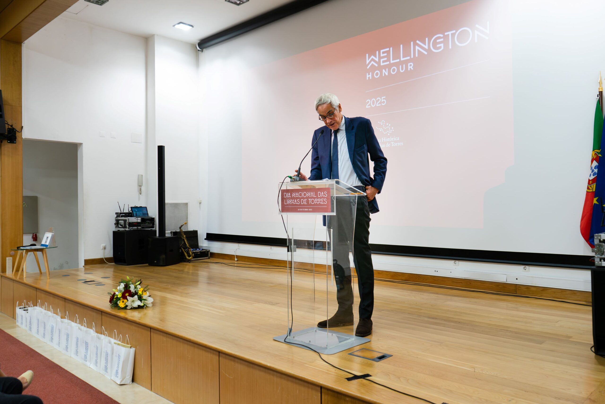 Seguiu-se a entrega dos Prémios Wellington Honour pelos membros da direção e pela presidente da Assembleia Geral da RHLT, distinções que valorizam a excelência e a inovação em diferentes áreas ligadas à valorização do património, à promoção dos valores das Linhas de Torres Vedras e à cooperação entre entidades comprometidas com o legado histórico e cultural deste território.