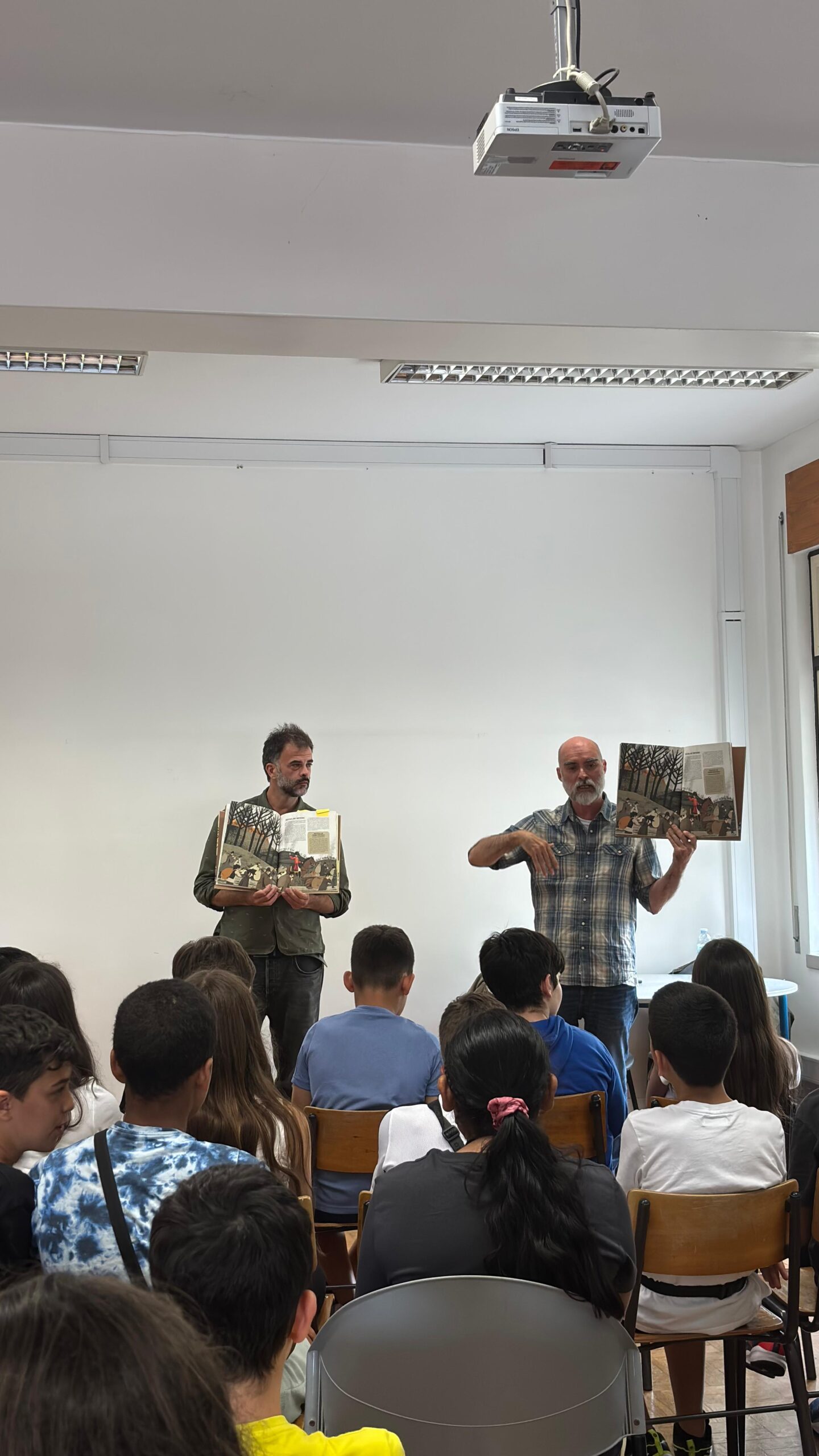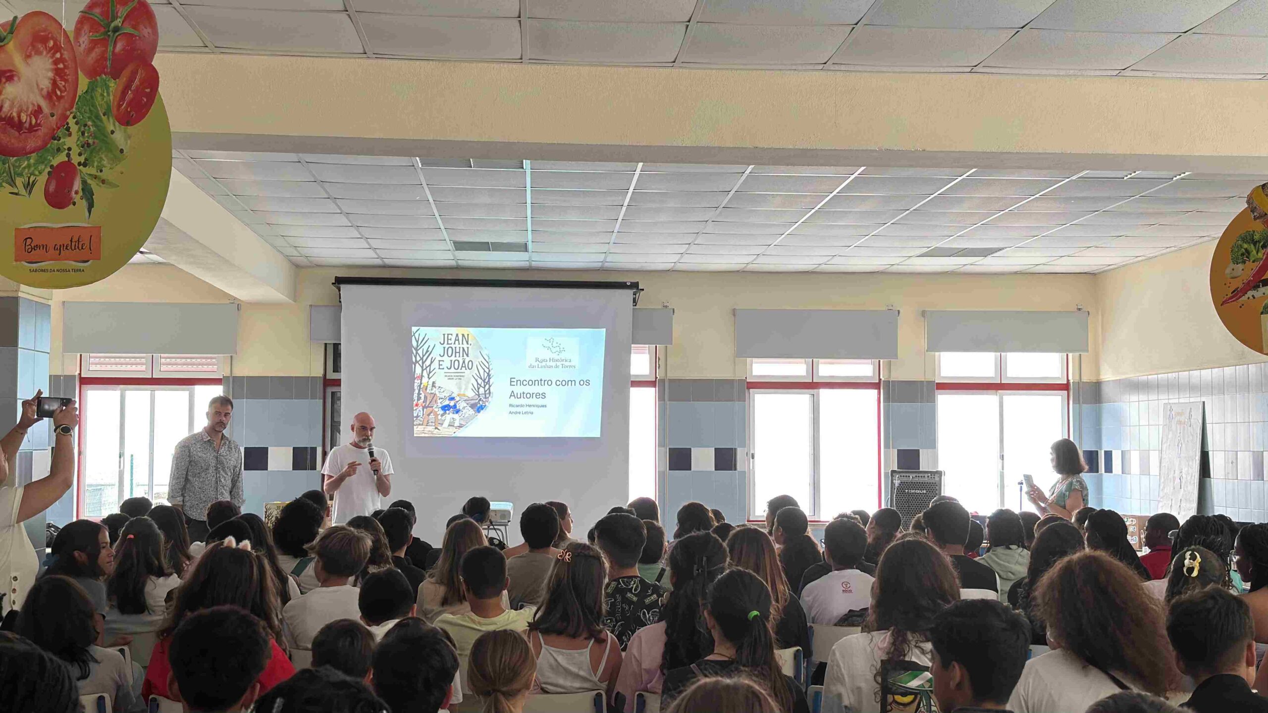 Nestes dias, o escritor Ricardo Henriques e o ilustrador André Letria apresentaram o livro aos alunos dos 2º e 3º ciclos, que têm nos seus programas escolares as matérias subordinadas a estas temáticas. Paralelamente, os professores desenvolveram com as suas turmas diferentes Oficinas das quais resultaram produtos diferenciados, como dramatização, maquetes, entrevistas, jogos de tabuleiro, exposições e até uma música original dedicada Povo Herói daquele tempo, que aqui partilhamos.